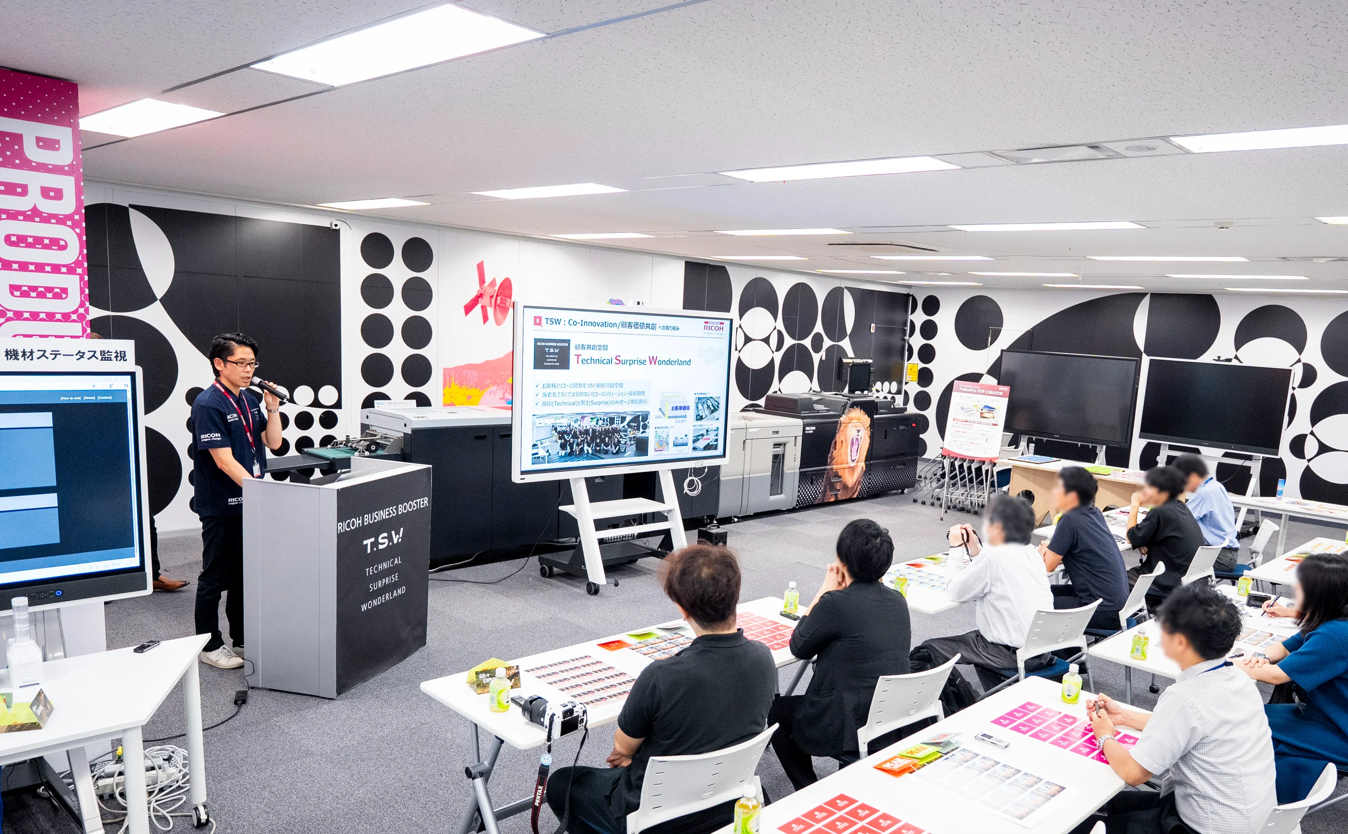 Attendees shared impressions such as, “I now have a clearer understanding of Ricoh’s commercial and industrial printing business,” and “experiencing the actual equipment and co-creation spaces made the presentation much more tangible.”