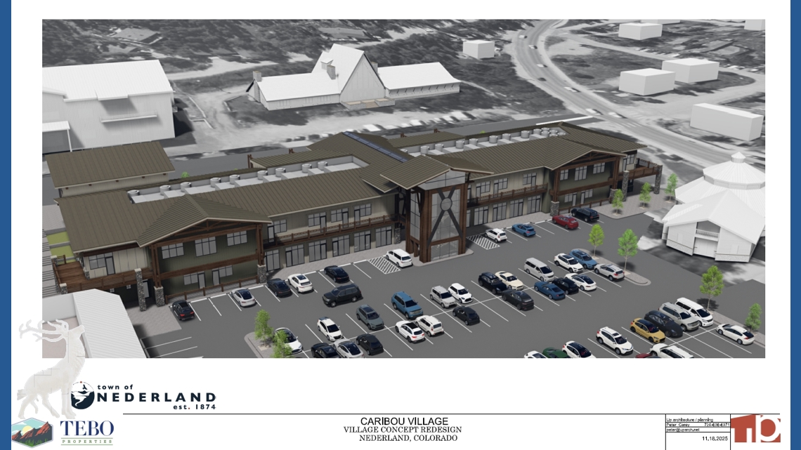 NEDERLAND, Colo. — Nearly four months after a massive fire destroyed nearly two dozen businesses in Nederland, the remains of the burned down Caribou Village Shopping Center sit behind.