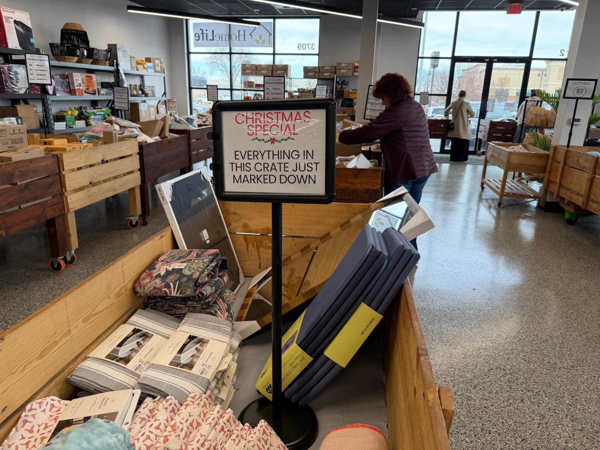 His current model combines deeply discounted merchandise with crates that steadily go down in price each day after they’re put on the floor. Those typically contain merchandise from Target and Amazon, where Oien has a contract to take products from the Sioux Falls fulfillment center.