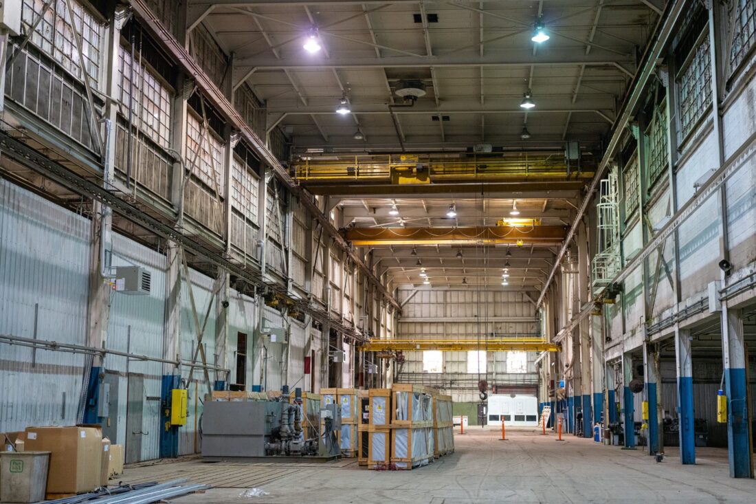 “The beauty is in the connections between manufacturing, the life sciences, energy, and robotics,” Redding said, who observed the massive interior of the empty plant.