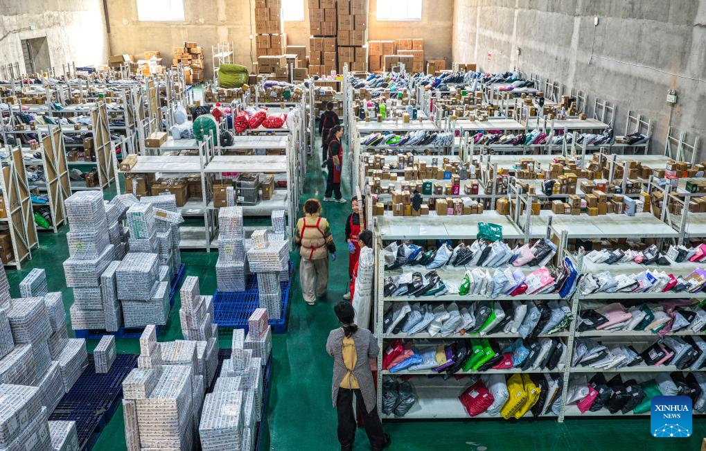 A worker packs products at an e-commerce company in Xiayi County of Shangqiu City, central China’s Henan Province, Nov. 11, 2025. E-commerce and logistics companies across China are working at full capacity during the annual “Double Eleven” shopping festival. (Photo by Wang Gaochao/Xinhua)