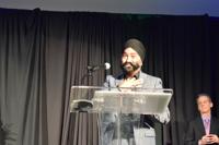 Sunny Raheja speaks after his company, Raheja Construction, was named Professional Service Business of the Year during the 2025 Small Business Awards.