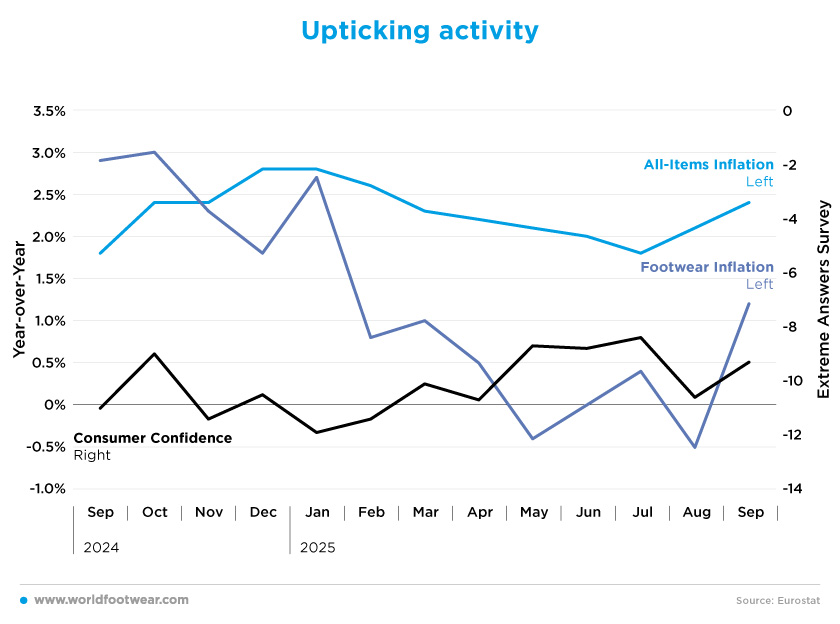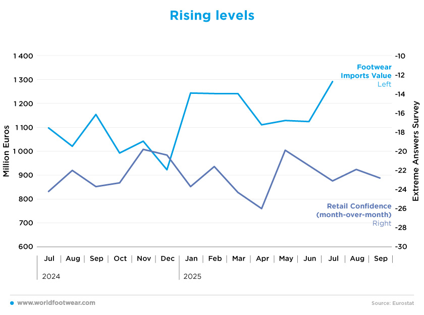But the rising levels of imports do not appear to be driven by retailers, even though retail confidence has increased by 3.8% since the beginning of the year, having reached its lowest point in April 2025. The contrasting trends in imports and sales, as well as import prices and inflation, have led economists to question the country’s position as a European hub for the footwear trade.