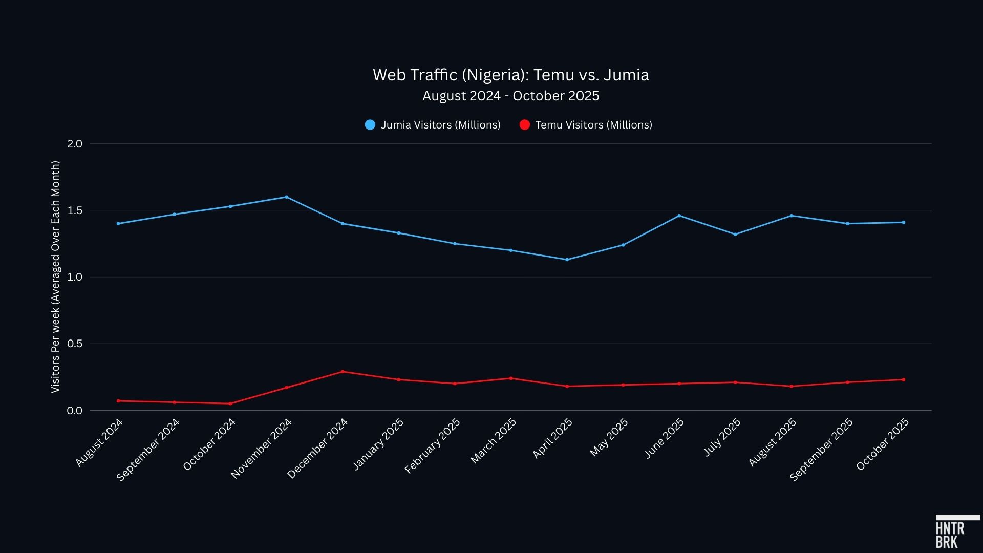 Graph comparing Jumia and Temu web traffic in Nigeria
