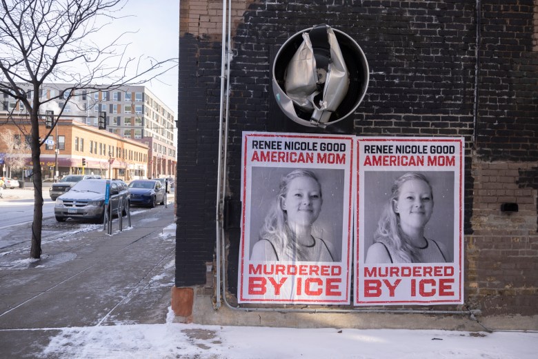 Posters of Renee Nicole Macklin Good on a building in Minneapolis’ Dinkytown neighborhood on Jan 23, 2026. Credit: Chris Juhn for Sahan Journal