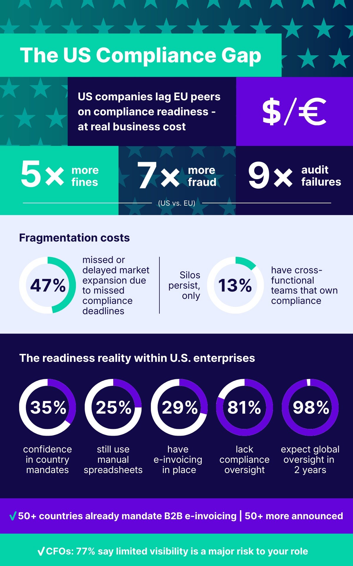 Technology – or lack thereof -also plays a role. Modern compliance requires real-time data flows. Spreadsheets and patchwork automation cannot handle multi-country mandates. Yet this is what most companies still rely on. According to The Compliance Wake-up Call: