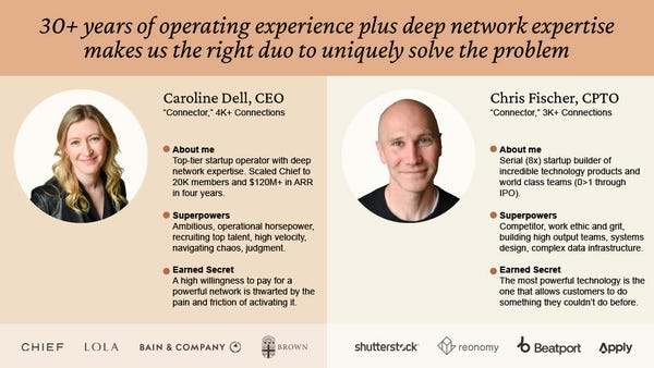 About me: Top-tier startup operator with deep network expertise. Scaled Chief to 20K members and $120M+ in ARR in four years.