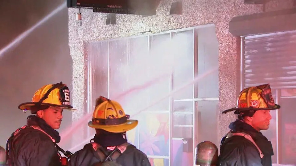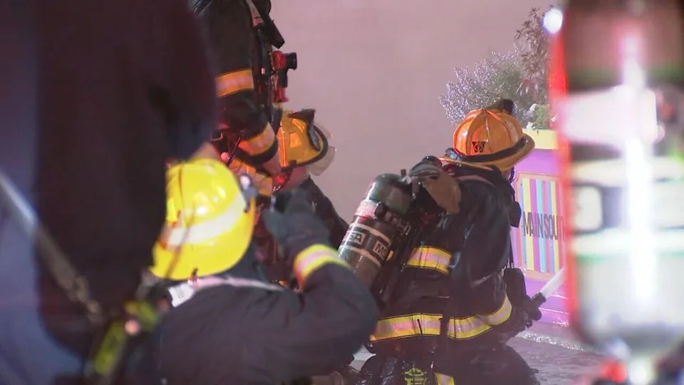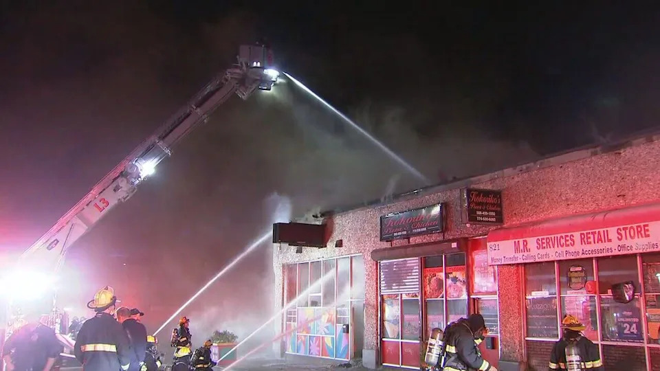 The strip mall where the fire broke out houses businesses, including M.R. Services Retail Store, Kokoriko’s Pizza & Fried Chicken, and California Hair Design.
