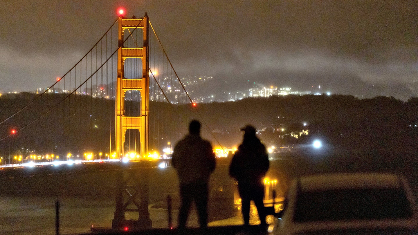 People observe an area affected by a blackout that hit about 130,000 residents, according to the Pacific Gas and Electric Company, in San Francisco, on Dec. 21, 2025. (Carlos Barria / Reuters Photos)