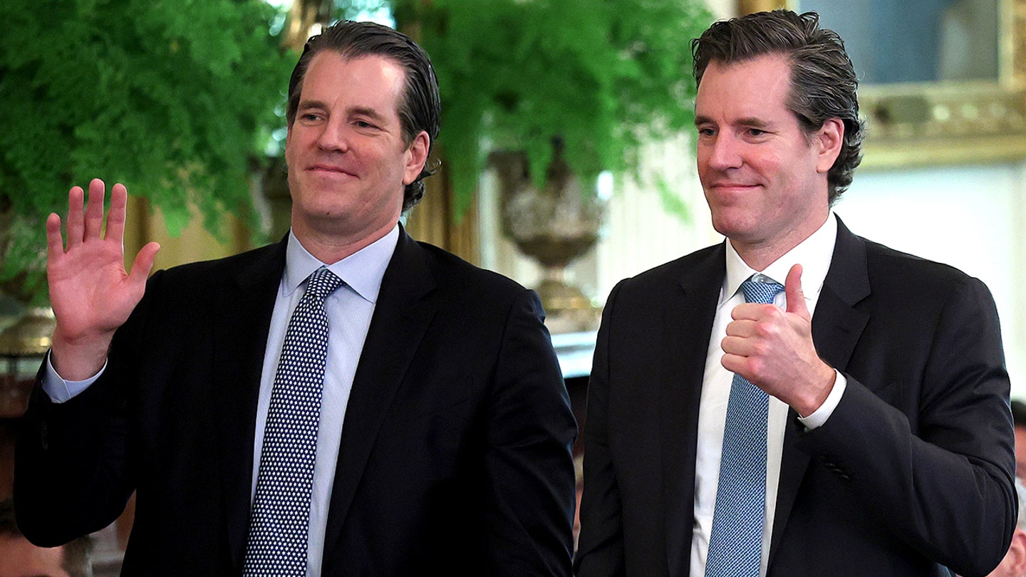 Investors Tyler and Cameron Winklevoss attend the signing ceremony for the “GENIUS Act” in the East Room of the White House July 18, 2025.  (Win McNamee/Getty Images / Getty Images)