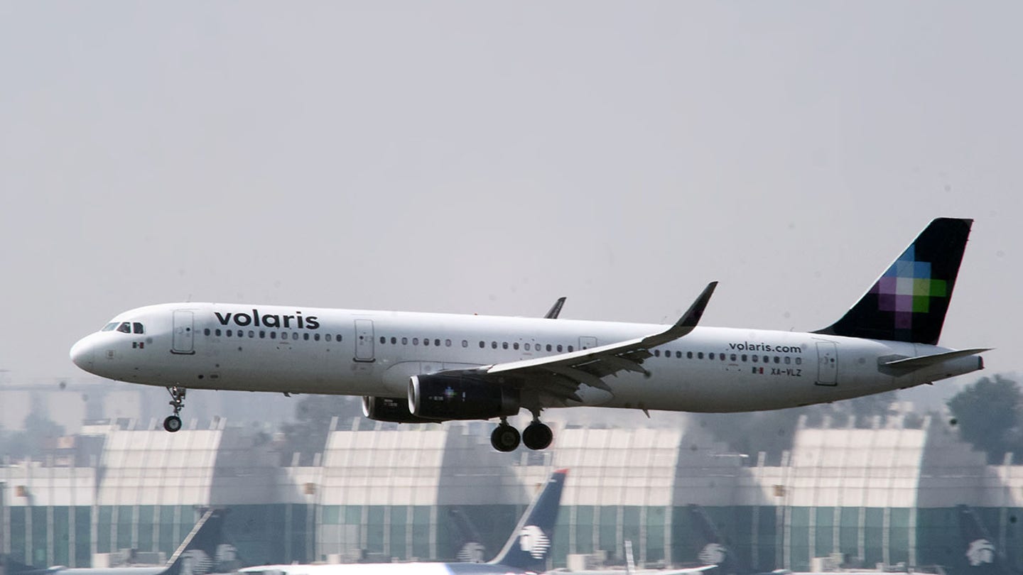 A Volaris aircraft prepares to land at Benito Juarez International Airport (MEX) in Mexico City, Mexico, on Monday, Aug. 11, 2025. (Mauricio Palos/Bloomberg via Getty Images / Getty Images)