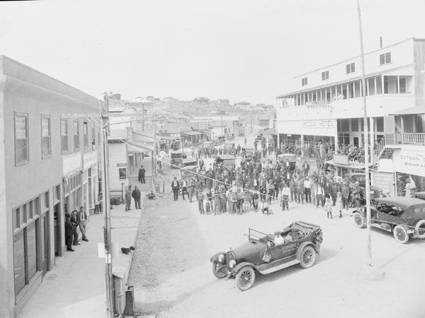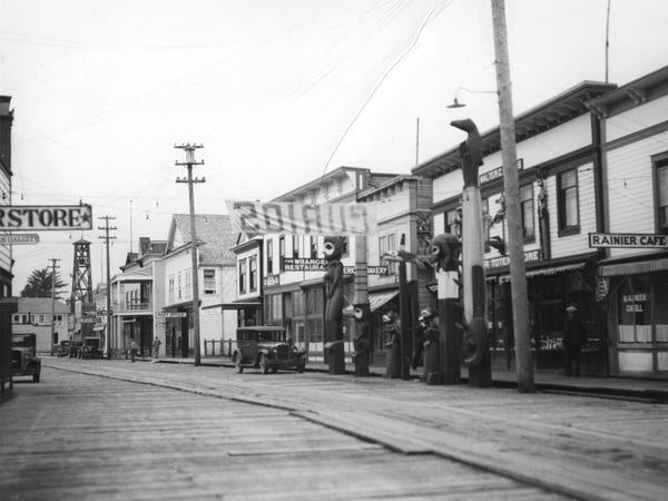Wrangell, Alaska, pictured below in the early to mid-1900s, was discovered by the Tlingit tribe.