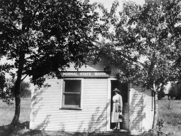 The state bank in Normal, Nebraska, is pictured in the early 1900s.