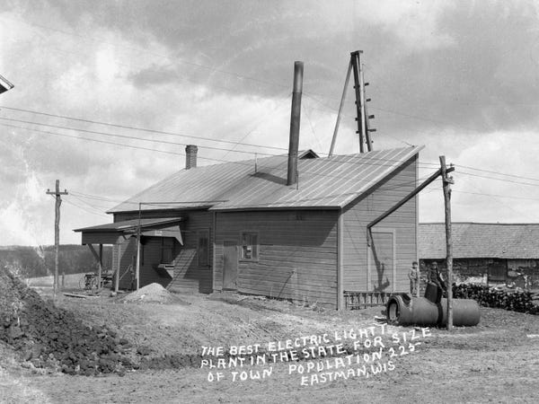 In Eastman, Wisconsin, in 1920, the town’s power plant was a small building that looked like it could be someone’s home.