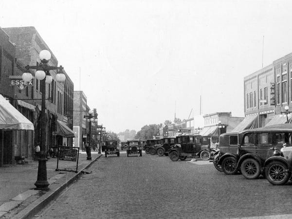 But before the economic turmoil, small towns across the US were home to close communities, quaint main streets, and the first automobiles.