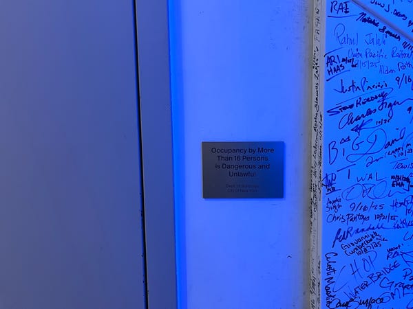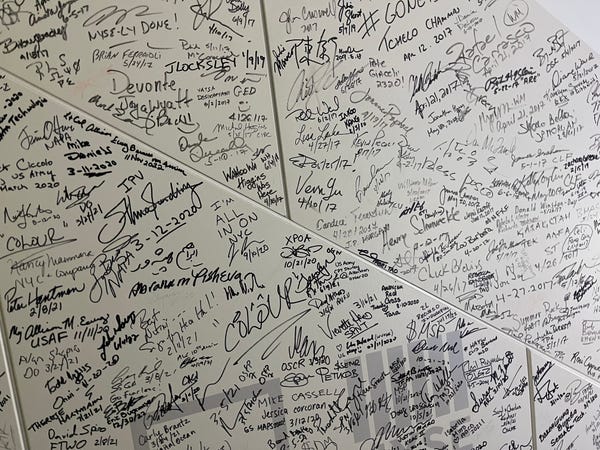 The walls are lined with panels that guests have signed. Typically, guests sign the boards after they’ve rang the bell and are heading back down to the trading floor.