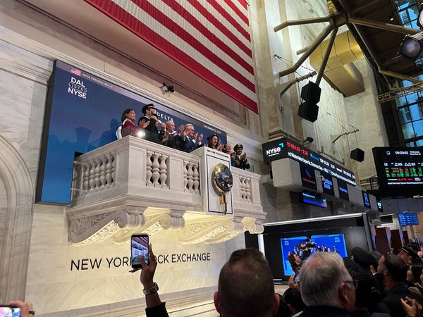 I was going for the opening bell at 9:30 am, so I arrived about half-an-hour early. Airline company Delta was celebrating its 100th anniversary, and its CEO Ed Bastian, as well as a few of the company’s pilots and flight attendants, were set to ring the bell.